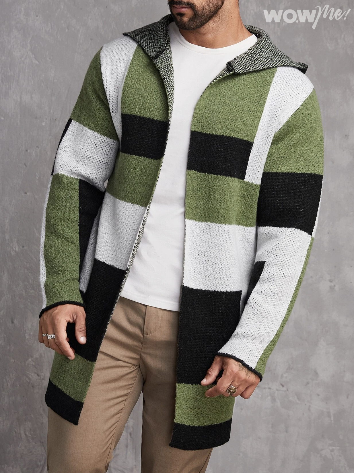 Manfinity Homme Men’s Plus Size Color Block Hooded Cardigan Sweater