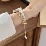 1pc Women’s Gold Cat Eye Stone Bracelet Metal Watch Band Compatible With 38/40/41/42/44/45/49mm Apple Watch Ultra/se/8/7/6/5/4/3/2/1